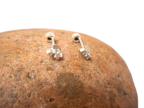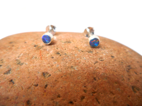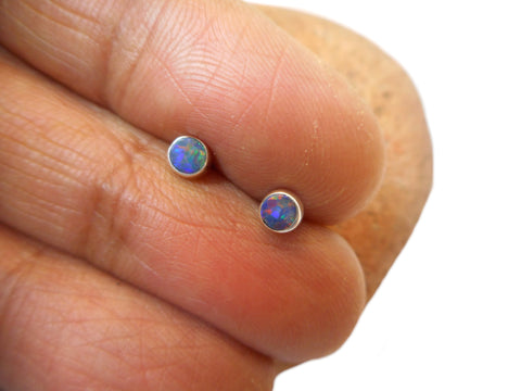 Small Round Australian Opal Sterling Silver 925 Gemstone Stud Earrings - 3 mm
